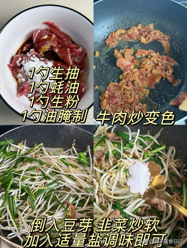 2.芽菜韭菜炒牛肉