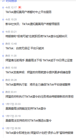 继好意思东时刻1月18日半夜,短视频应对媒体平台TikTok已住手在好意思劳动后,好意思西时刻19日9时30分(北京时刻20日1时30分)把握,TikTok在应对媒体上发布声明说: